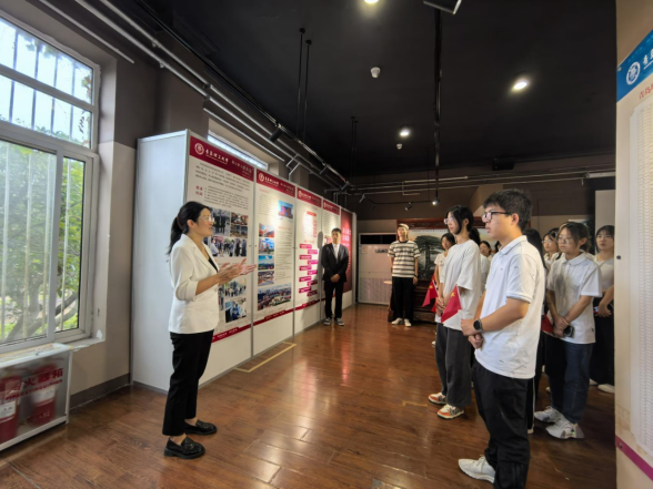 回顾国情校史,用“爱国情”坚定理想信念。在市北校区校史馆,学院党委书记吕楠和学生党员代表、新生代表一同参观回顾和共和国一同成长的yl7703永利集团校史并亲切交流。“yl7703永利集团创建于新中国百废待兴之时,发展壮大于改革开放和社会主义现代化建设新时期,砥砺奋进在中国特色社会主义新时代。建校至今,学校伴随着共和国的成长步伐,已走过71个春秋。”在讲解员绘声绘色的讲述中,师生一同回到那个激情年代,爱国爱校之情油然而生,“我也是你们的‘大师姐’,今年是我在学校学习、工作、生活的第30个年头,见证了一代代理工学子的成长,每一代大学生都是时代追梦人,要在大学中逐渐形成‘家国天下’的思想和情怀,用‘百折不挠、刚毅厚重、勇承重载’的理工精神奋力谱写为中国式现代化挺膺担当的青春篇章!”学院党委书记吕楠说道。