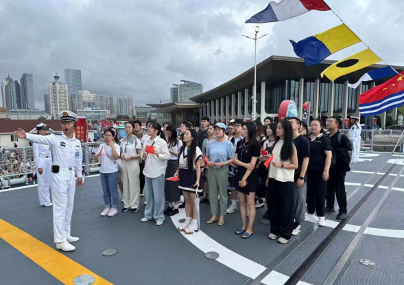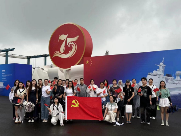 走进大国重器,用“强国志”铸就报国梦想。在奥帆中心码头,学院党委副书记范晓光、研究生辅导员带领研究生党支部参加庆祝中华人民共和国成立75周年北部战区海军舰艇开放日活动。师生党员参观了导弹驱逐舰唐山舰和导弹护卫舰邯郸舰,零距离感受海军现役舰艇的风采,了解人民海军发展壮大的历程。这些“大国重器”承载着国人梦想,勾勒出我国科技力量的崛起之路,激发着师生们的报国之志。“能近距离看到护卫伟大祖国的‘大国重器’真是太荣幸了!走在甲板上,仿佛看见它们在执行任务中的飒爽英姿,我从中深切感受到了中国海军向海图强、砺剑深蓝的时代航迹,感受到了祖国的伟大富强!作为研究生,我一定会尽我所能投身科技创新,把论文写在祖国广袤的大地上!”研究生党员陈赵慧参观后说道。