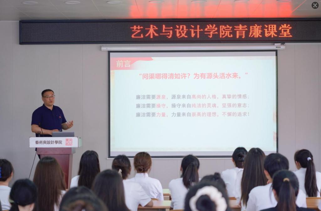 6月13日下午,艺术与设计学院开展2024届毕业生党员离校前“最后一堂党课”暨廉洁教育主题活动,学院党委书记吕楠,学院党委纪检委员、副院长丁南,2024届毕业生党员参加活动。