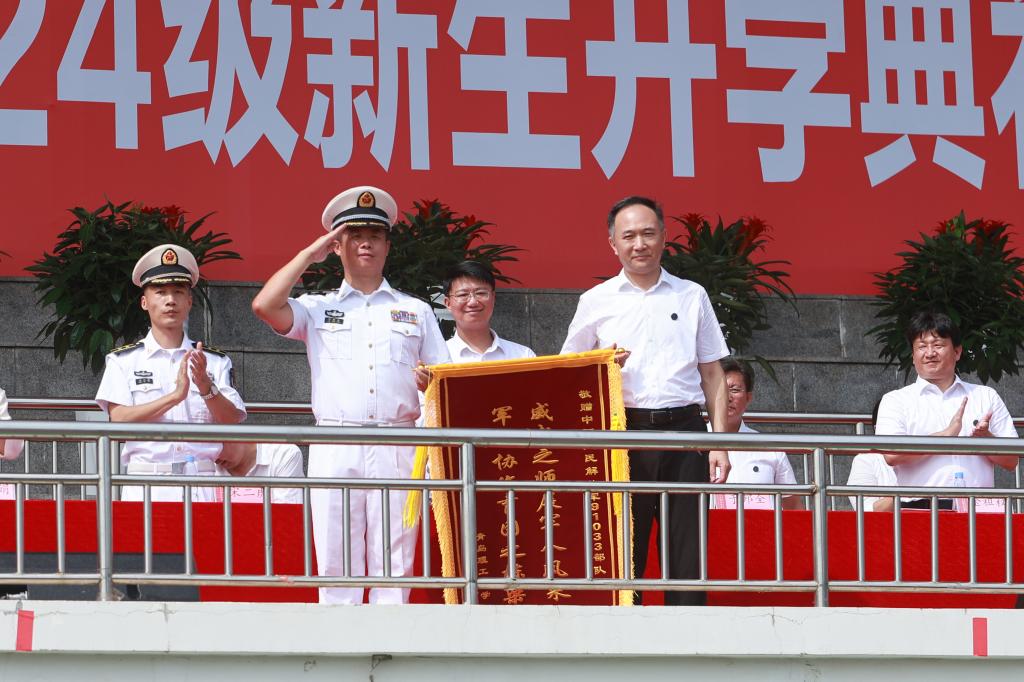 比学赶超练精兵,强我理工展风采。党委常委、副校长郭建锋现场为承训部队赠送锦旗,表达了学校对承训部队的衷心感谢。团委书记副书记王鹏飞、临沂校区团委副书记王彤宣读2024级新生军训工作先进集体和个人表彰决定。学校领导依次为受表彰的先进集体和先进个人颁奖。