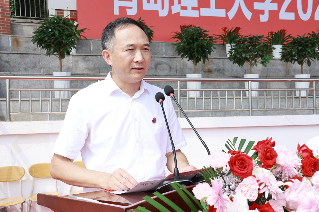 殷殷嘱托催奋进,不负期望谱新篇。党委常委、副校长郭建锋作军训总结讲话。他代表学校向付出辛勤劳动的教官们表示了由衷的敬意,向参与本次军训的老师及后勤保障的同志们表示衷心的感谢,向圆满完成军训任务的同学们表示热烈的祝贺!他对同学们提出三点希望:一是要有“风物长宜放眼量”的格局,树立“愿得此身长报国”的志气,让青春逐梦远航;二是要有“咬定青山不放松”的定力,锻造“千磨万击还坚劲”的骨气,让青春焕发光彩;三是要有“乘风破浪终有时”的信心,增强“敢教日月换新天”的底气,让青春厚德载物。