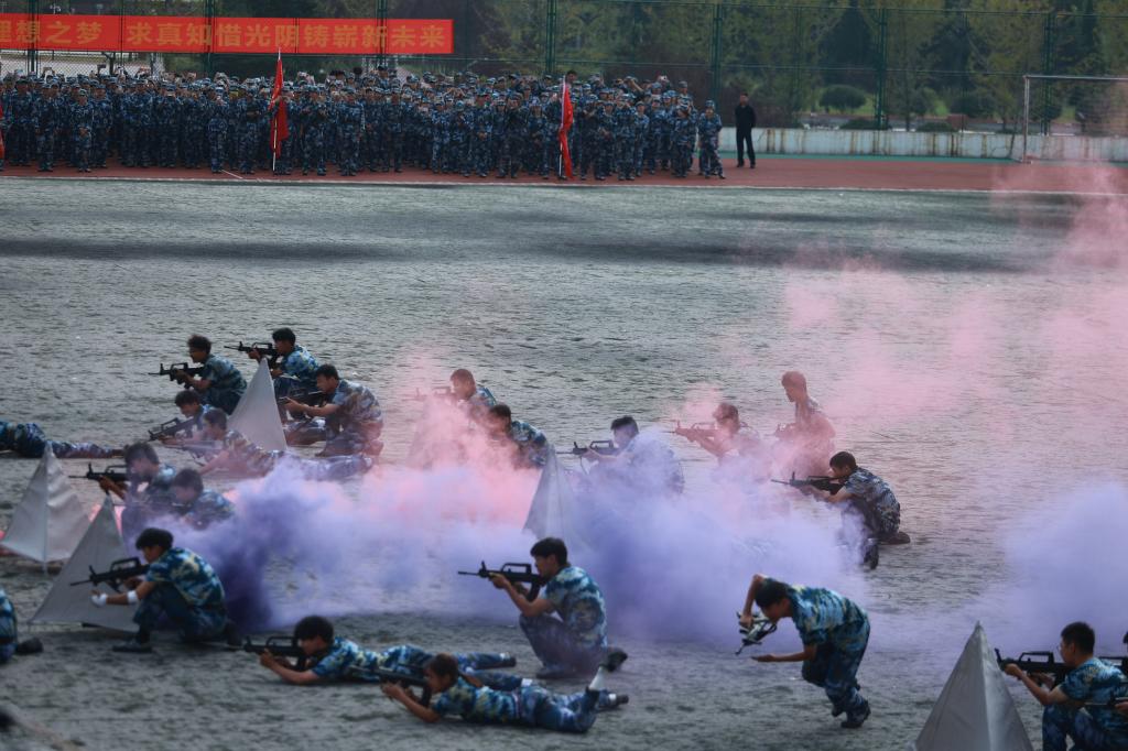 学校今年继续实行“师生同训、军政双训”,把显性教育与隐性教育、解决思想问题与解决实际问题、广泛覆盖与分类指导结合起来,从新生入学开始抓好思想引领,帮助学生厚植爱党爱国爱社会主义情怀,实现了军事训练和思政教育双丰收。