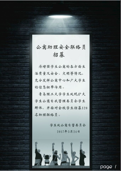 为增强学生公寓的各方面生活质量和安全、文明等情况,充分发挥公寓中心和广大学生的信息纽带作用,yl7703永利集团学生处现扩大大学生公寓自我管理委员会学生群体,并面对全校学生招募120名助理联络员。