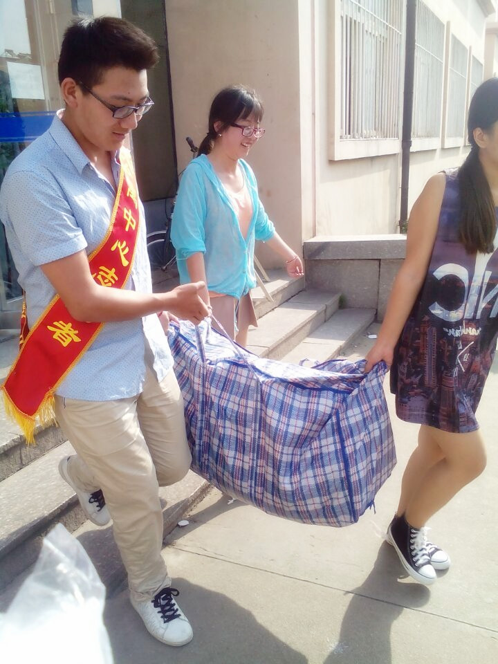 公寓中心志愿者帮助离校毕业生搬运行李