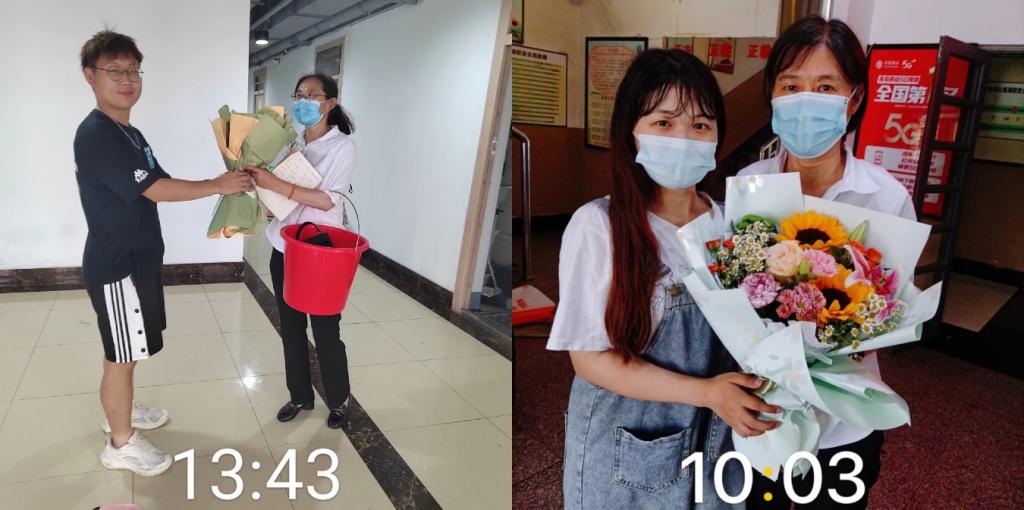 毕业生纷纷对母校多年的培养表达了感激之情,对多年来提供生活服务的公寓物业人员表达了诚挚的谢意,自发为她们送上了鲜花,祝愿她们身体健康、工作顺利。