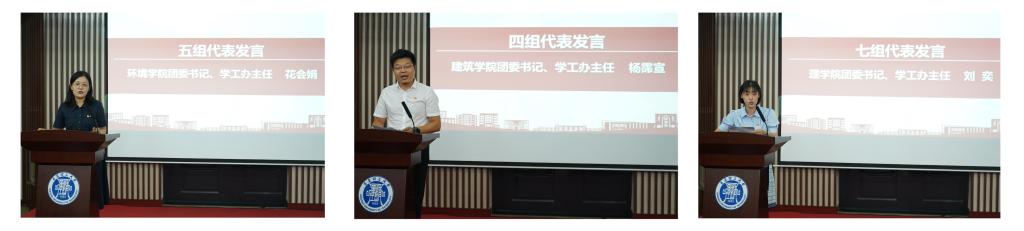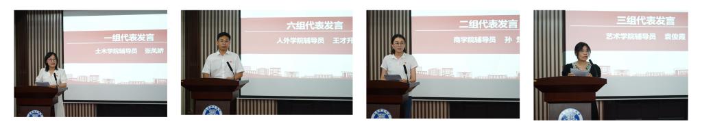 结班仪式上,学员代表建筑学院团委书记兼学工办主任杨霈宣、环境学院团委书记兼学工办主任花会娟、理学院团委书记兼学工办主任刘奕、土木学院辅导员张凤娇、商学院辅导员孙楚、人外学院辅导员王才升、艺术学院辅导员袁俊霞分享了学习心得体会,感谢学校对辅导员素质能力提升培训的大力支持,为辅导员搭建了拓展思维、提高能力、交流互动的平台,激发辅导员将培训成果转化为推动学生工作的新思路、新举措。