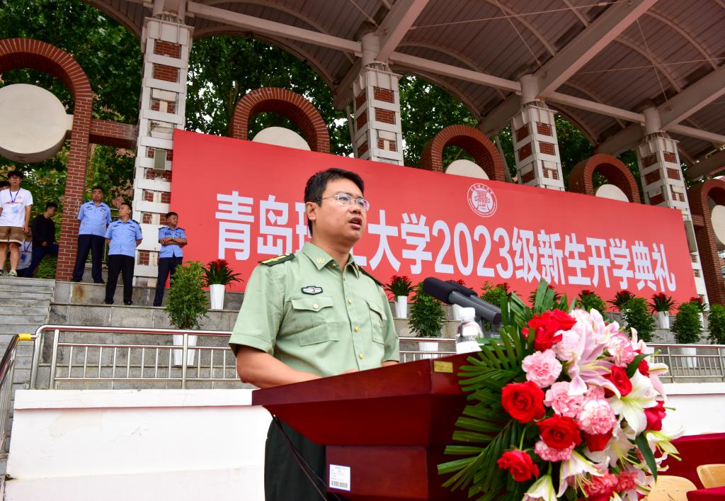 英姿飒爽扬军风,意气风发新起航。9月13日、14日上午,我校2023级新生军训总结表彰大会分别在黄岛校区和临沂校区举行。学校相关职能部门负责同志、各学院党委书记、临沂校区各系负责同志以及2023级全体军训教官、参训新生参加。大会由学生工作处(武装部)处长(部长)焦红良、临沂校区学生工作部主任、团委书记、武装部部长张传亮分别主持。