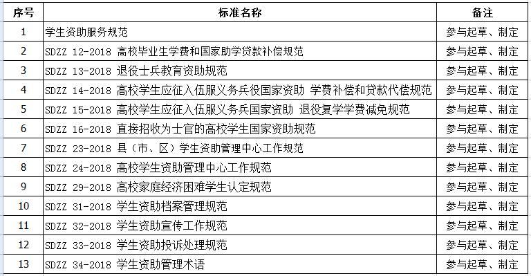 我校参与起草、制定的《山东省学生资助综合管理标准体系》规范目录: