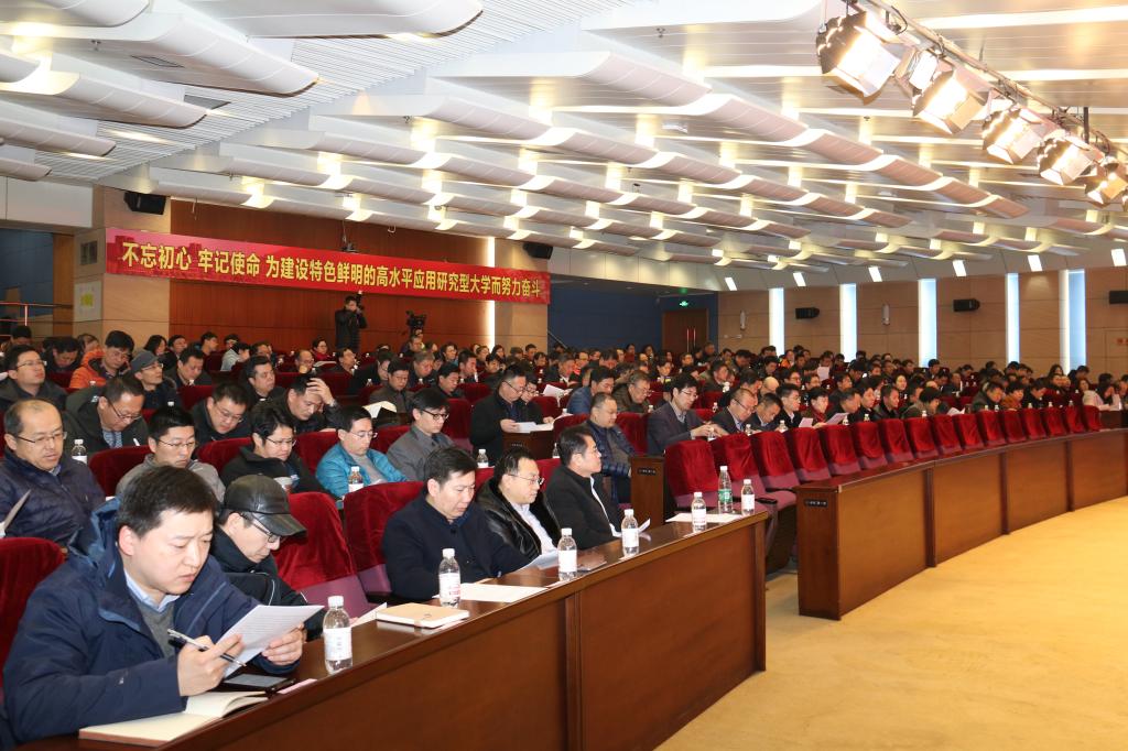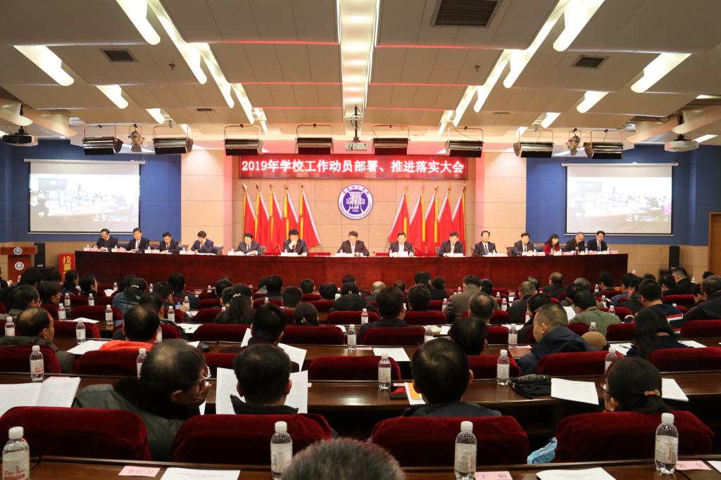 2月22日下午,新学期开学前夕,2019年学校工作动员部署、推进落实大会在市北校区学术报告厅召开。党委书记王亚军主持会议并讲话,校长谭秀森部署学校党委、行政2019年工作。学校领导班子成员,副处级以上干部,正高级职称专家,市级以上党代表、人大代表、政协委员,民主党派主要负责人和无党派代表人士参加。临沂校区在办公楼202会议室设视频分会场。会上,谭秀森同志简要回顾了学校2018年各项工作取得的成绩和存在的不足,向所有为学校发展付出心血、默默奉献的干部教师职工,向全校师生,表示敬意和感谢。 谭秀森指出,2019年是新中国成立70周年,是全面建成小康社会的关键之年,大事多、喜事多、要事多;2019年也是省委确定的“担当作为、狠抓落实”之年;也是学校全面落实第三次党代会精神、建设特色鲜明的高水平应用研究型大学的开局之年,是学校实现高质量、内涵式发展的攻坚之年。学校要紧紧围绕建设特色鲜明的高水平应用研究型大学的目标,努力夯实办学条件基础和内涵发展基础。在改善办学条件方面当务之急是新校区建设,重点是扩大开放,集聚办学资源,优化资源配置;在内涵发展方面关键是人才队伍建设,核心是学科专业建设,基础是院部建设。