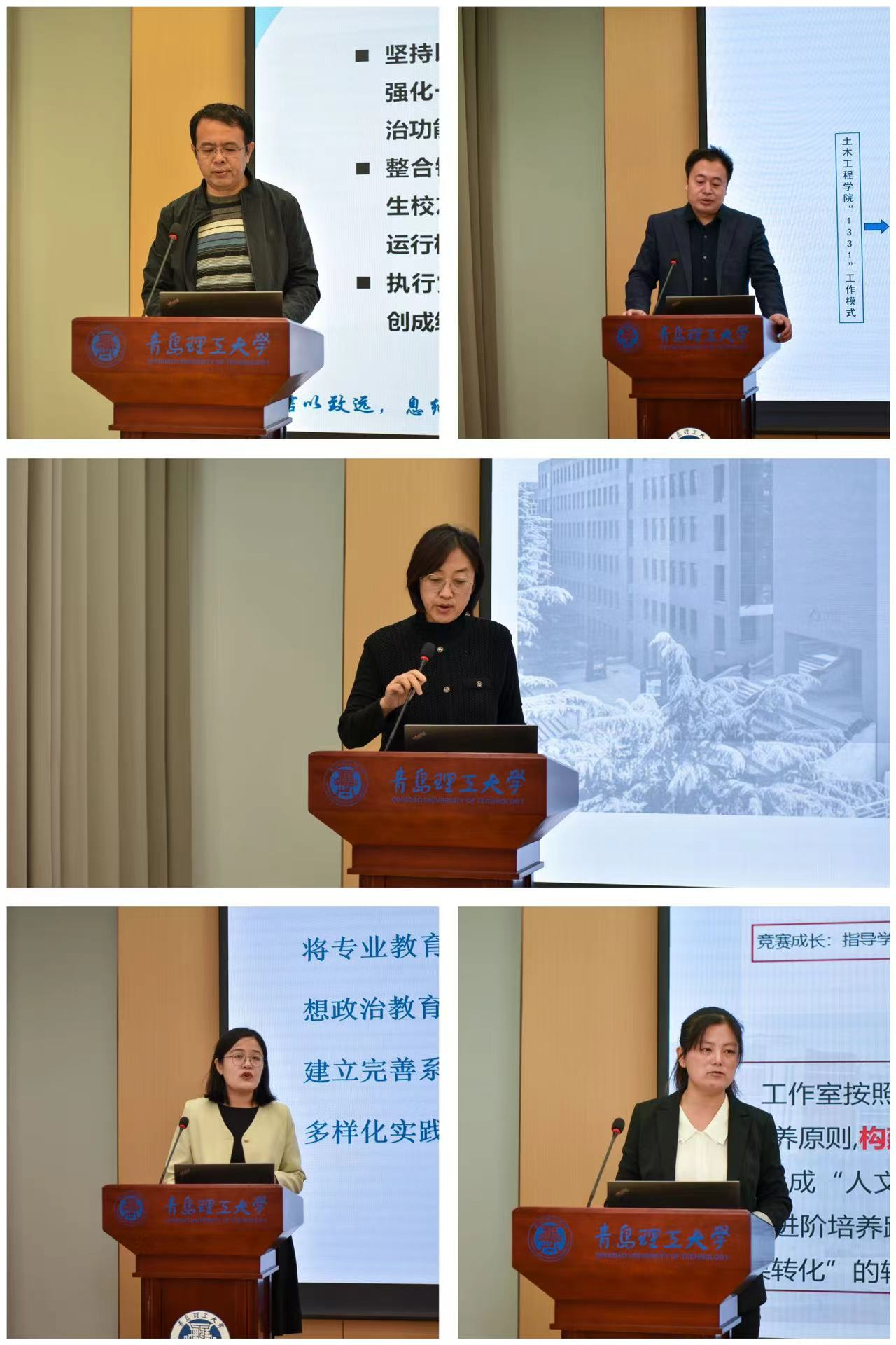 “领航青春”文化育人工作室、“一站式”公寓育人研究工作室、“敦华匠心”三全育人工作室、专业教育融入思政教育全过程研究工作室、“6+N”一体化创新创业辅导员工作室主持人依次进行答辩,采用PPT陈述及支撑材料评审形式进行,对照工作室中期考核任务要求,详细介绍了工作室的基本建设情况、工作思路与实施举措、工作特色与阶段性成果、存在问题和下一步工作计划等内容,聚焦于辅导员工作和学生成长重要节点,较好地体现了辅导员工作室的阶段性建设成果和育人成效。经过答辩汇报、材料评审等各环节,五个工作室均通过中期验收。