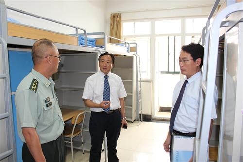 9月18日上午,李东副校长与军训部队首长到黄岛长江路和嘉陵江路校区15级新生军训宿舍检查内务情况。黄岛校区办公室、学生处负责人及各学院副书记陪同检查。