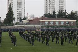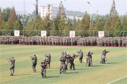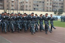 分列式后,军训方队进行了队列队形变换、刺杀操、警棍盾牌术军体拳、匕首操等汇报表演,他们充满豪迈自信和磅礴气势的演出赢得在场师生和官兵的热烈掌声。