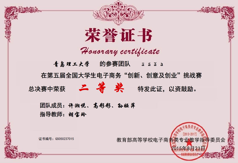 近期,第五届全国大学生电子商务“创新、创意及创业”挑战赛全国总决赛圆满落幕,我校学生获得全国总决赛二等奖。