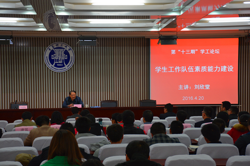 刘欣堂强调了学生工作队伍素质能力的重要性和素质能力建设的必要性,报告主要从以下四个方面展开:第一、要研究和适应高校思想政治教育工作的新常态,主要包括党和国家空前重视高校思想教育工作、互联网技术空前发展、意识形态斗争空前复杂、社会环境空前多元多变、学生利益诉求空前多样。要把握这些新常态,加强责任感和使命感,精准化做好学生工作;第二、要树立和贯彻新理念,如创新发展理念、协调发展理念、绿色发展理念、开放发展理念以及共享发展理念。要将“五大理念”贯彻到学生工作中,努力创新,把握机遇,赢得主动,尊重学生,切实满足学生诉求;第三、要把握和提升高校学生工作新思维,要有战略思维、历史思维、辩证思维、创新思维、底线思维、法制思维和互联网思维。学生工作需要把握战略方向,引导学生确定人生发展方向。要转换思维方式,利用互联网大数据,讲求方法和手段的创新,精准化工作,做一名合格的辅导员;第四、要注重课题研究,要研究学生,读懂学生。工作中要注重研究核心问题、关键问题、新问题和难点问题。