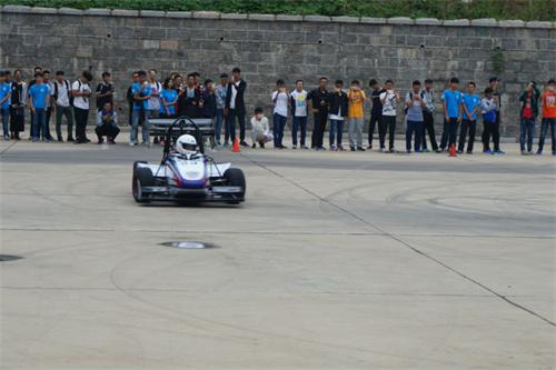 发布会现场对新车产品进行了性能展示。与去年相比,QTU6号赛车在动力性、稳定性、可靠性、快捷性等方面都有进一步的提升。赛车手在汽车实验楼场地上为大家熟练操控驾驶QTU6号赛车,大家都纷纷拍手叫好。