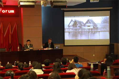 住建部部级优秀设计评委会专家委员、全国优秀建筑设计金奖获得者、山东大卫国际建筑设计有限公司总建筑师申作伟先生,他以“新中式建筑的探索与实践”为主题,从建筑设计发展的趋势和我国建筑设计的发展历程对新中式建筑的创作背景进行分析,从文化差异、地域性与民族性差异、审美趋向的差异进行传统与现代建筑的统一和建筑创作上的东西理念进行分析;日本千叶大学教授Ryosuk Shimoda在“作为日本城市与区域再生基础的自然墓地及现代两墓制的发展”讲座中分享了日本城市的区域再生理念并对中日差距进行分析;日本东京科学大学博士、东京OUVI建筑师事务所所长Shin Yokoo 在“从建筑设计和结构设计两个角度探究建筑学”中用过视频与提问的方式与大家探究建筑设计和结构设计对建筑学的重要影响;凯泽斯劳滕应用技术大学教授Werner Baeuerle在“欧洲的木构建筑:传统与现代”中强调形式来源于材料及其组织方式、建筑材料和建造工艺在某种意义上市形成建筑文化的基础,只有了解工程木材的特性及其表现方式,才能传承传统建筑文化;香港中文大学和慕尼黑工业大学客座教授、奥地利格拉茨技术大学Ferdinand Oswald先生则就“降低中国住宅空调使用率的建筑理念”讲述了香港的空调状况,指出空调多带来的污染将成为中国乃至世界的问题,并且提供了多种国际上使用建筑设计进行遮阳的新理念。