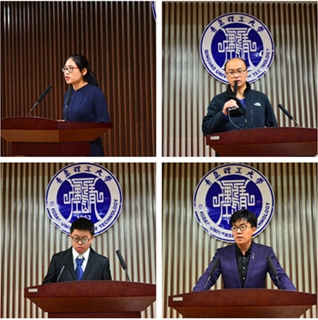 经过评委现场打分,土木工程学院刘欣然、自动化工程学院胡立功、商学院刘奕荣获一等奖,高职学院宋晓峰、商学院宋颖、通信与电子工程学院王俊富、经贸学院刘心芝、管理学院马小童荣获二等奖,计算机工程学院周承倜、外国语学院张玉腾、环境与市政工程学院岳磊、自动化工程学院薛腾、汽车与交通学院殷宗华、单勃奥、艺术学院王斐荣获三等奖。