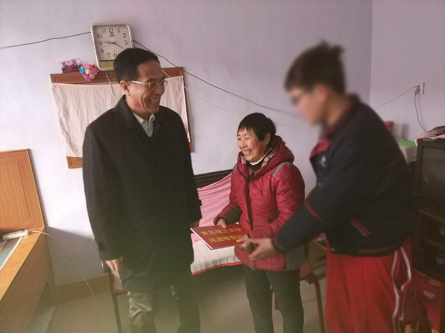 2月10日上午,副校长齐德义在学生工作处处长宋玲陪同下,赴山东省诸城市贾悦镇两县村走访建档立卡家庭经济困难学生,为困难学生家庭送上慰问品及慰问金,带去学校的温暖和关爱。学生工作处国家助学贷款管理中心老师、机械与汽车工程学院辅导员参加走访。