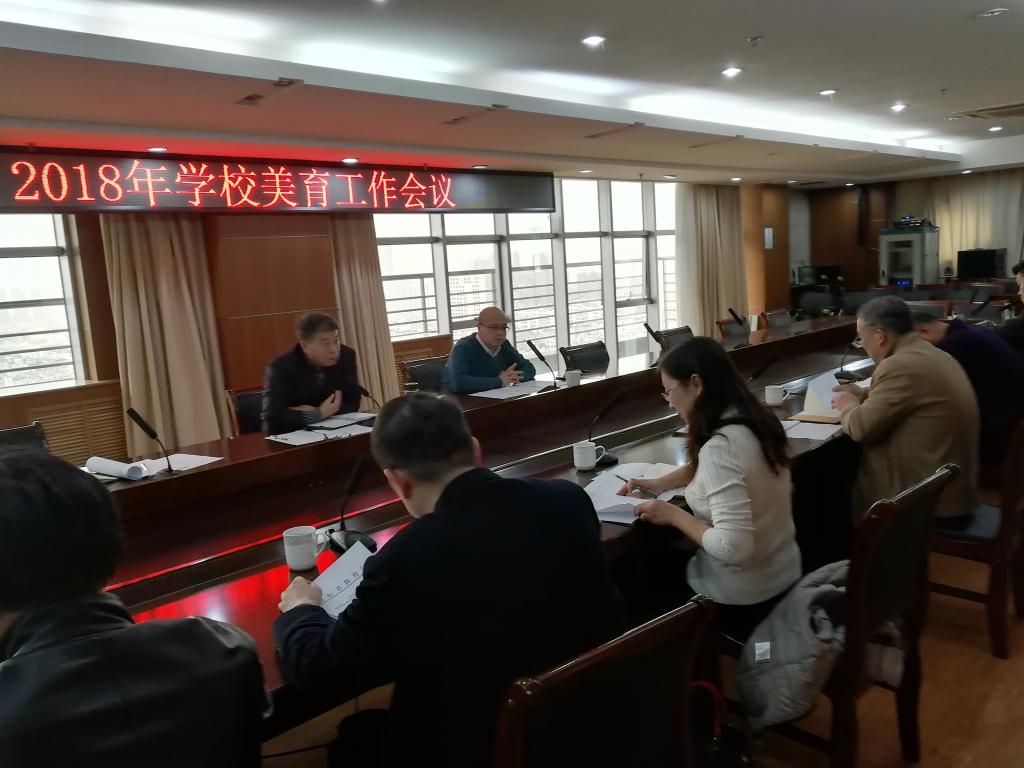 为深入贯彻落实习近平总书记在全国教育大会上关于美育工作的重要讲话和给中央美院老教授的重要回信精神,切实加强我校美育工作,11月28日,学校在1908会议室召开2018年美育工作会议。会议由副校长张伟星主持,校办、宣传部、团委、人事处、教务处、财务处、资产管理处、基建处、图书馆、艺术与设计学院、人文与外国语学院等相关部门负责人参加了会议。
