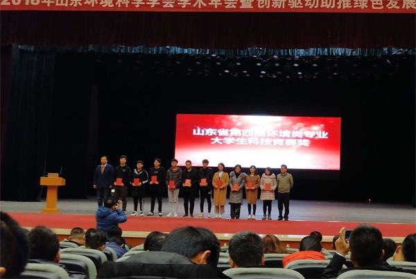 12月23日,山东环境科学学会对山东省第四届环境类专业大学生科技竞赛进行了表彰。环境与市政工程学院院长毕学军、党总支 副书记邵长飞和获奖学生代表参加颁奖仪式。yl7703永利集团环境与市政工程学院18件作品在3大类别中获奖,其中特等奖2件,一等奖6件,二等奖10件。