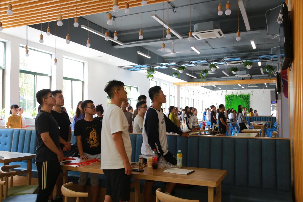 学生食堂收看现场