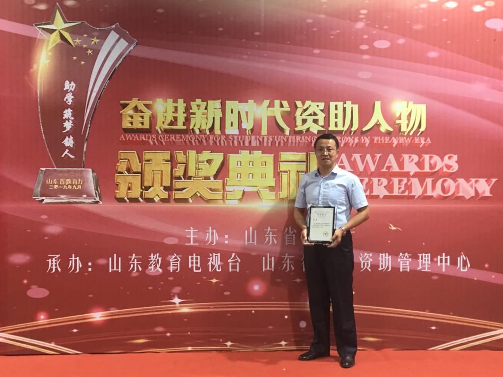 9月29日下午,“春风化雨七十载 资助奋进新时代”资助人物颁奖典礼在山东教育电视台演播大厅举行。山东省副省长于杰,省政府副秘书长辛树人,省教育厅厅长邓云锋出席颁奖典礼。“奋进新时代资助人物”共70人,其中“筑梦大使”优秀资助工作者35人。我校学生处学生资助管理中心主任董虎老师当选“筑梦大使”优秀资助工作者。