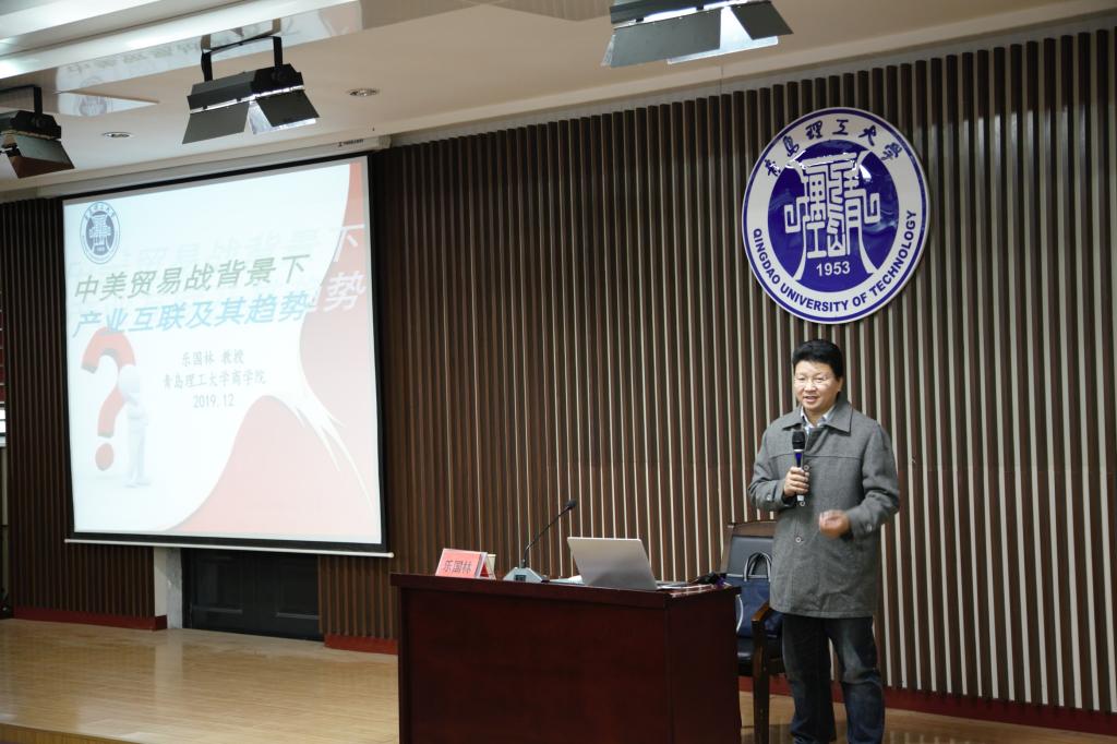 为拓展商科学生专业视域,帮助学生深刻了解当前国际国内产业发展形势,12月4日下午,商学院于嘉陵江路校区一楼东报告厅举办“潮头”讲堂第八讲,本次讲座特邀商学院乐国林教授主讲,主题为《中美贸易战背景下我国产业互联网发展趋势及影响》。商学院党总支副书记董兰国主持,院长助理、经济学教研室金炜博、国际经济与贸易教研室等教师、全体研究生及17、18、19级部分同学共300余人报名参加本次讲座。