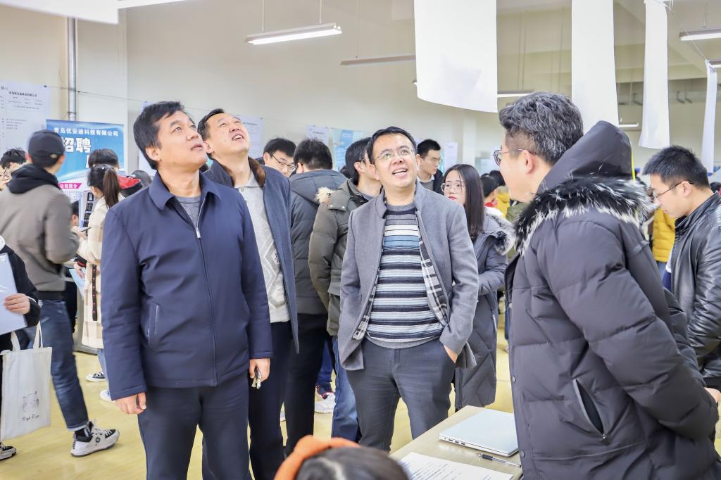 为更好地服务2020 届毕业生就业,促进毕业生多渠道、高质量、更充分就业,1月3日上午,信息与控制工程学院于嘉陵江路校区西区体育场下举办“追梦·致远”2020届毕业生(研后场)就业双选会,来自省内外的50余家用人单位应邀参会,毕业生近500人参会,低年级近千人到现场观摩。学生工作处副处长鞠志强、申维东,信息与控制工程学院党总支书记董典同、副书记曲良波、副院长赵景波在招聘现场与参会单位负责人进行了深入交流。