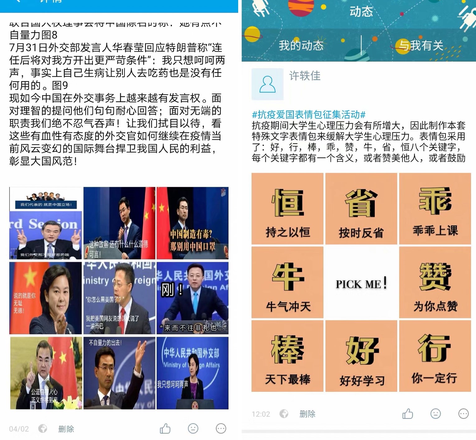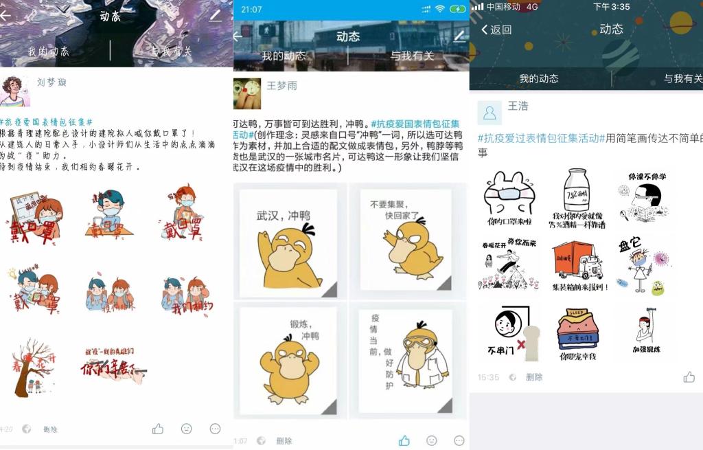 此外,建筑与城乡规划学院学生还积极参与“‘易’起定格抗疫爱国行表情包征集”活动,加强了对国家的归属感与荣誉感,也让同学们加深对自己专业的理解,树立专业热情,找准自己未来努力的方向,践行五四精神,争做时代的中流砥柱。