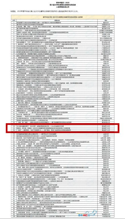 日前,2020年“青年中国行”大学生暑期调研实践活动全国百强名单揭晓,我校三个项目成功入选全国百强名单。