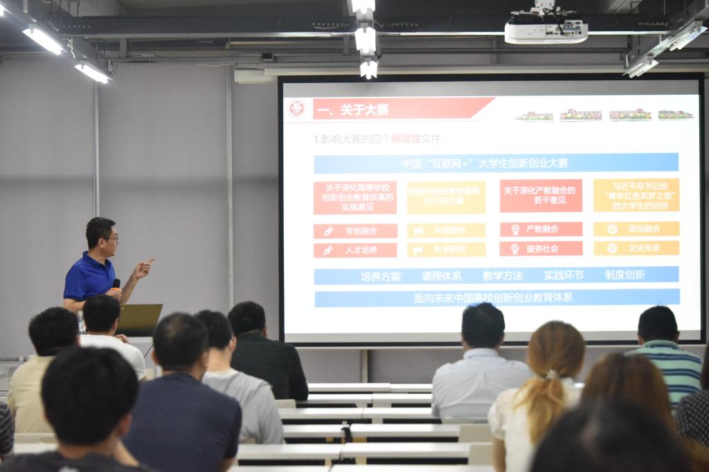 为更好开展第六届“互联网+”国际大学生创新创业大赛,全面提升创新创业教育水平,7月6日下午,建筑与城乡规划学院于滨海人居环境学术创新七楼开展大赛专题辅导点评,学院邀请学校创新创业学院常务副院长李忠晓教授现场进行辅导。建筑与城乡规划学院院长许从宝、副院长朱一荣、党总支副书记高江,建筑系主任王少飞、城乡规划系主任刘一光,各系分管本科教学、科研副主任,全体学生工作干部及40岁以下青年博士参加专题辅导。