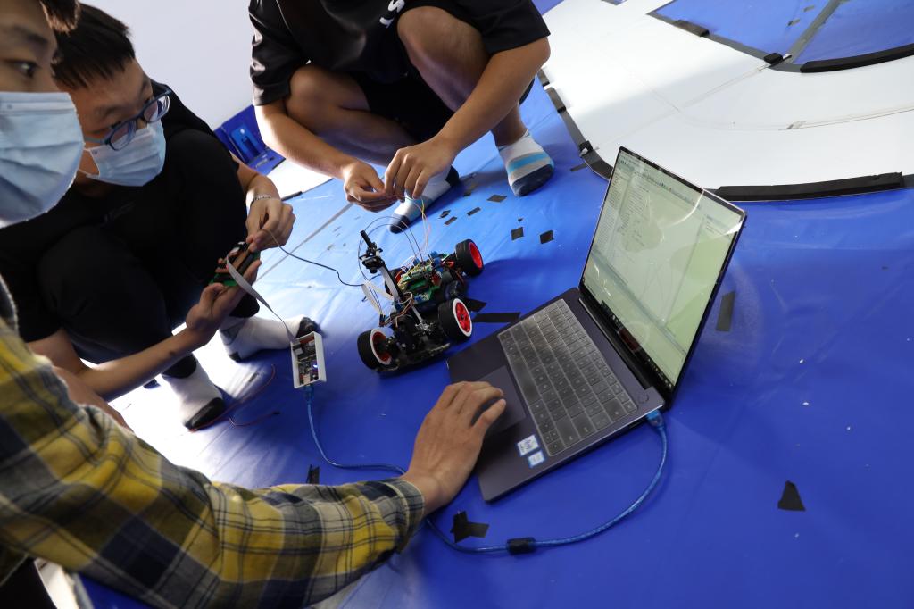 比赛过程中,计时、引导、裁判和评委任务分工明确。上交车模、试车、正跑与反跑等比赛流程均安排紧凑,进展顺利。各组队员努力让小车处于稳态,负责调试的队员不断检查智能车,其他队员擦拭赛道与智能车车轮胎。各支队伍通力合作,智能车也承载着各队的希望在赛道上奔驰。