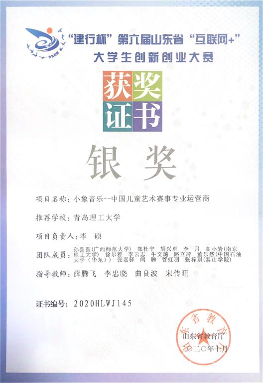 日前,由青岛西海岸新区管委主办的2020年“青蓝汇”创新创业大赛在青岛西海岸新区圆满落幕,我校信息与控制工程学院2016届校友毕硕携其青岛和硕联创控股集团有限公司的小象音乐在线教育平台项目在大赛中经过激烈角逐,喜获三等奖,这也是该项目继2020年在第六届中国国际“互联网+”大学生创新创业大赛中获得校赛冠军、山东省银奖之后再次获奖。