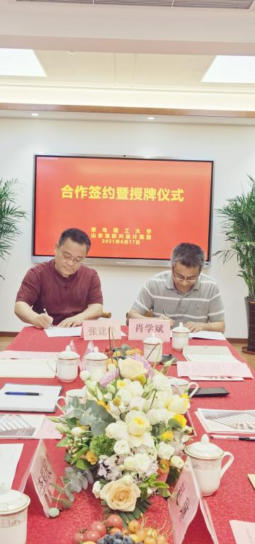 山东龙跃兴设计集团有限公司董事长张建华与我校建筑与城乡规划学院党委书记肖学斌签订就业创业实践基地建设协议,山东龙跃兴设计集团有限公司副总经理、院长李彩民与我校建筑与城乡规划学院党委委员、副院长赵琳签订研究生联合培养基地建设协议。