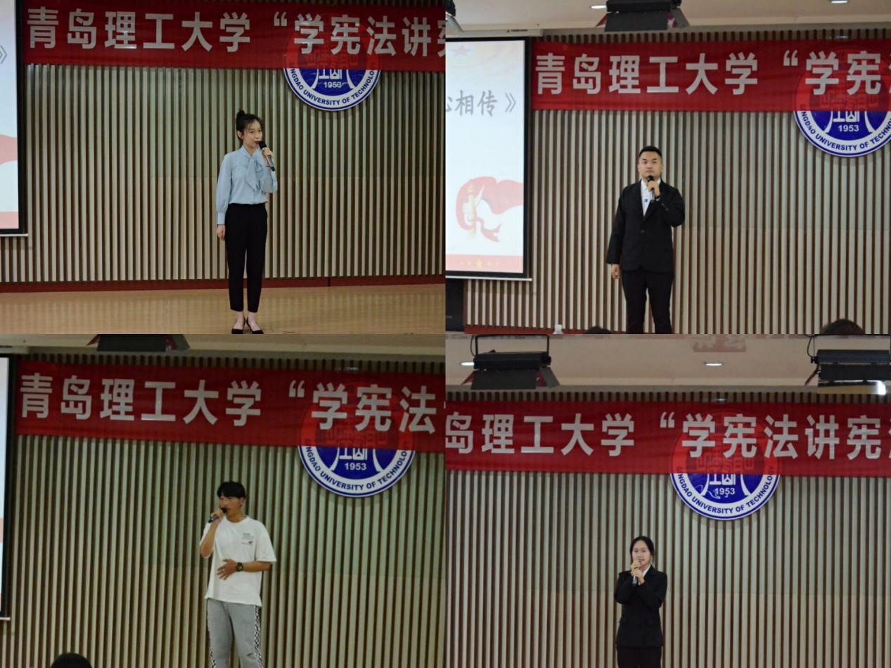 知识竞赛由单选题、多选题、判断题、案例题等多种题型组成,主要围绕《宪法》《民法典》《未成年人保护法》《预防未成年人犯罪法》《环境保护法》《国家安全法》等法律法规,结合社会主义核心价值观、诚信意识、社会文明、安全自护知识等内容开展,全方面考察学生法律素养,旨在不断提升学生的法治意识,让宪法精神在学生心中生根发芽。各个学院在前期组织选拔的基础上,推选出而出的8名选手来到决赛赛场,充分运用自己的法律知识,沉着冷静地答题,充分展现出理工学子昂扬向上的精神风貌、丰富的宪法知识积累和较高的法律素养。