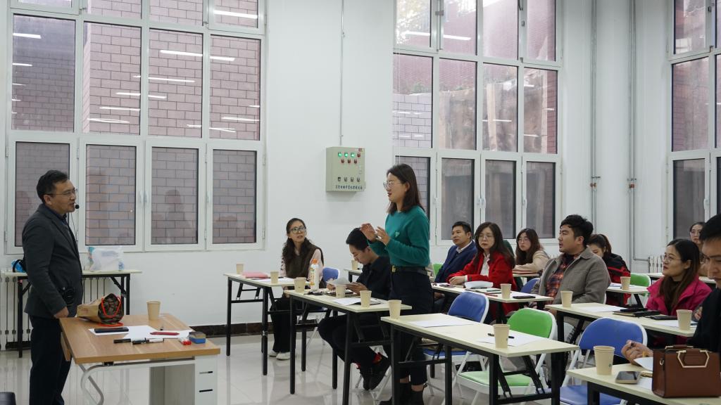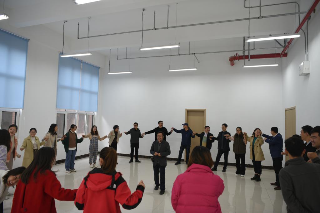 活动伊始,刘启辉首先通过调查问卷的形式了解了辅导员在工作和生活中所面对的压力及处理方式。随后,刘启辉带领大家进行了“抓与逃”和“互助放轻松”两个热身小游戏开启了破冰之旅,拉近彼此之间的距离,为活动营造了宽松愉快的氛围。小组活动“你从哪里来?我的朋友”“信任之旅”等体验互动式教学法,将理论讲授融入互动式体验实践之中,在团体辅导的实际应用案例中让大家感受到高校团体辅导操作性强、覆盖面广、效果明显等显著特点,感受信任与被信任、爱与被爱的幸福与快乐。他鼓励辅导员老师们可以应用这种方法对学业困难群体、经济困难群体、焦虑群体开展有针对性的团体辅导。