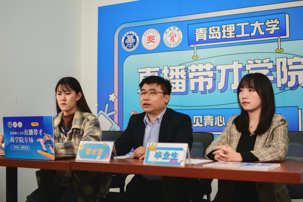 直播伊始,商学院院长云乐鑫就化身“主播”,首先对用人单位长期以来对学校就业工作的支持表示衷心感谢,并向大家详细介绍了商学院发展概况以及毕业生生源情况,向参与直播的企业HR们传达了2023届毕业生们的求职需求。随后,薛诚、石路捷、周丽等三位毕业生辅导员分别作为带才官,在镜头前为学生“代言”,结合用人单位需求向企业直播荐才。18名商学院应届毕业生先后做客直播间,通过云上“自我推荐”,与企业隔空交流并达成初步就业意向。在最后的校企互动环节,三位就业辅导员积极回应企业提问,与参与直播企业建立友好关系。“这次直播活动为我提供了一个展示自我的舞台,很庆幸自己能够抓住这次机会,非常感谢辅导员老师们的鼓励,让第一次直面镜头的我拥有了更多的自信,这次经历也为我之后的求职面试打下了一个坚实的基础”来自财管192班的毕业生范昭君这样说到。