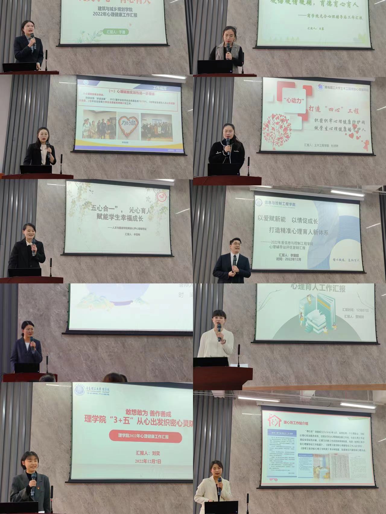 各学院围绕2022年心理辅导站开展的各项工作,从组织领导、运行机制、条件保障、队伍建设、活动开展、特殊学生工作、育人成效以及下一步工作打算等方面进行汇报展示,全面展示各学院心理健康教育工作的实效性及创新性。