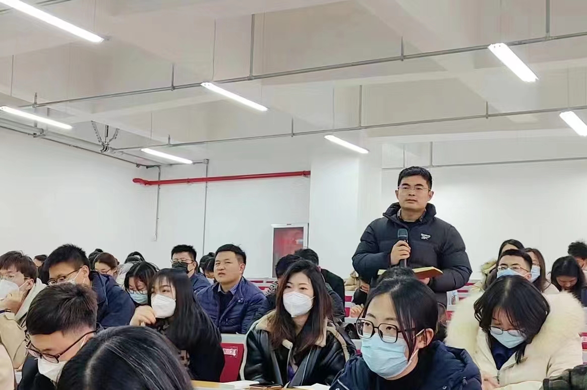 在提问环节,唐海波对现场辅导员提出的实际工作中的难点问题进行了深入交流,围绕如何为学业困难学生给予正确引导的等问题进行详细了解答。