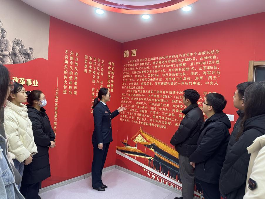 为学习传承雷锋精神,近日,校武装部及商学院共赴山东省军区青岛第三离职干部休养所开展“雷锋精神我传承 踔厉奋发新时代”学雷锋活动,校武装部国防教育科副科长季献涛,商学院团委书记薛诚,辅导员杨洪敏、袁涛,学校军事爱国者协会和商学院学生代表参加活动。