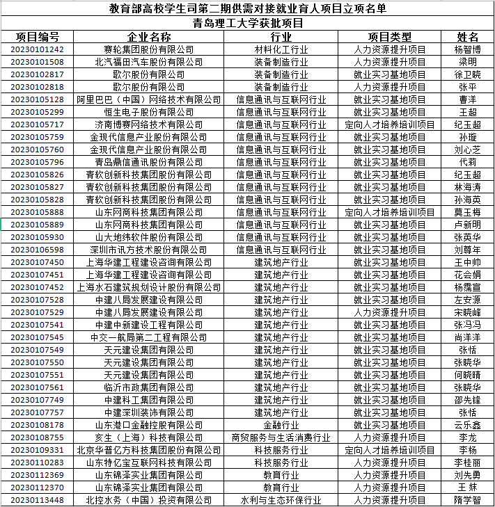 近日,教育部高校学生司发布《教育部高校学生司关于公布第二期供需对接就业育人项目立项名单的通知》(教学司函〔2023〕6号),我校37项就业育人项目批准立项,其中就业实习基地项目25项、人力资源提升项目9项、定向人才培养培训项目3项,获批项目数量较第一期增加25项,两期累计获批供需对接就业育人项目49项。