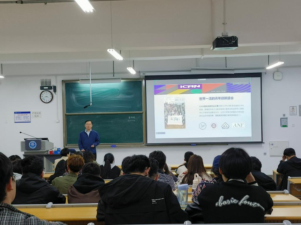 会上,宋传旺指出教育、科技、人才是全面建设社会主义现代化国家的基础性、战略性支撑。科技是第一生产力、人才是第一资源、创新是第一动力。希望大家通过ICAN创新创业大赛,养成勤于思考、善于思考、主动学习、主动创新、乐于吃苦、不怕困难的良好习惯和坚韧品质。然后,宋传旺通过自身多年指导竞赛的经验对ICAN比赛的比赛特点、比赛要求、创意激发、成果转化等方面为学生进行了深入浅出、全面、生动、权威的解读。宋传旺通过分享以往参赛同学的参赛经历、工作经历,说明创新对个人、对国家的重要性,极大地激发了学生们的参赛热情。最后,宋传旺鼓励同学们要大胆去想,放手去做;要学习真本领赛出风格,为校争光,为国家经济发展贡献自己的一份力量。