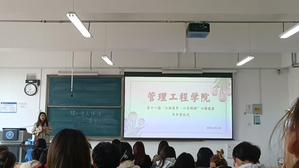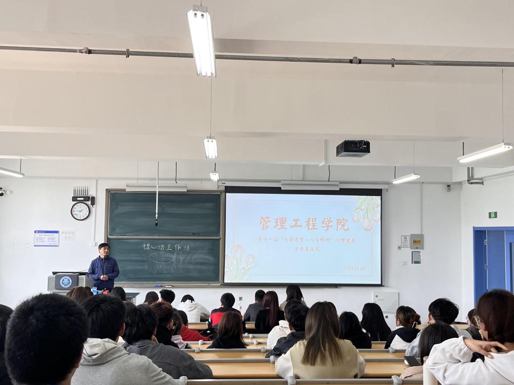 为进一步提高心理育人水平,促进大学生身心健康和谐发展,5月6日,管理工程学院“七秩逐梦·心自明朗”第十一届心理健康节开幕式在于2号教学楼311教室举行,学院团委书记宋晓峰,全体学生工作干部及各班级心理委员参加开幕式,开幕式由辅导员韩群主持。