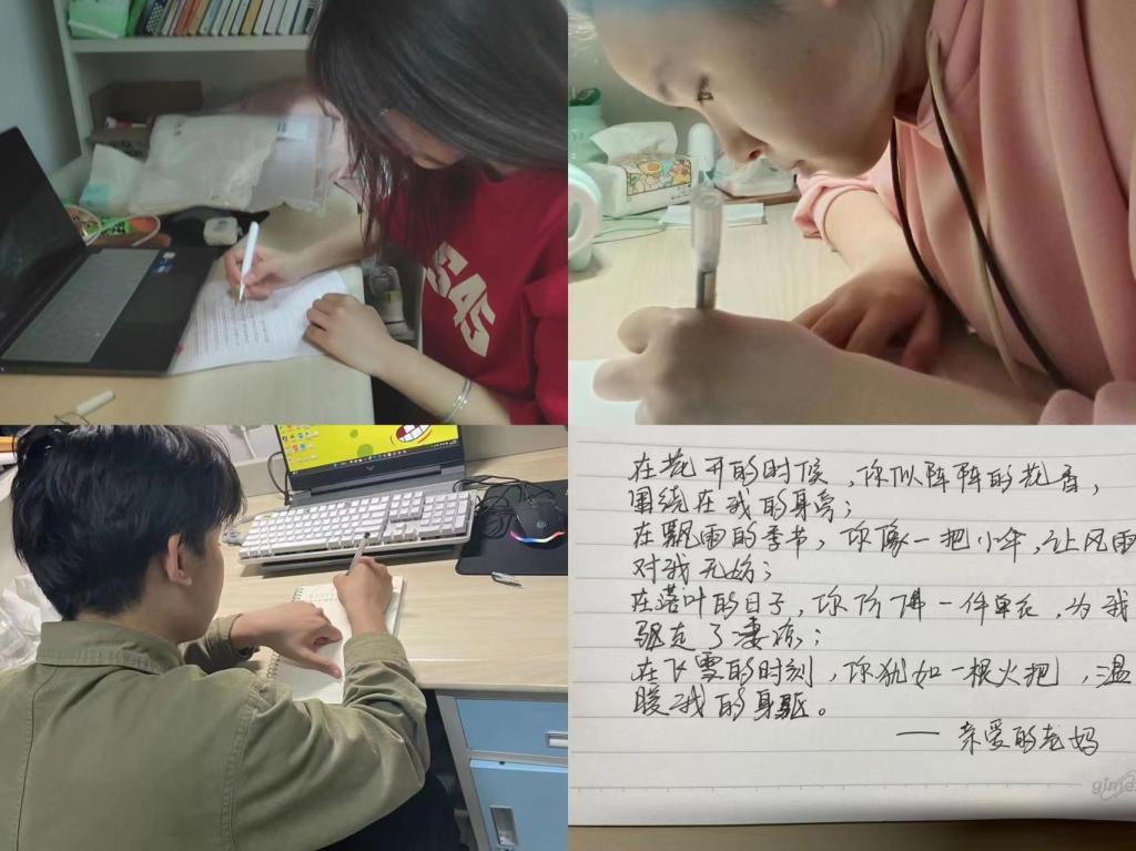 谁言寸草心,报得三春晖。在手写“给母亲的一封信”活动中,学院鼓励同学们在沟通依靠输入法的时代用手写亲笔信的方式将对母亲的爱与感恩诉诸笔端、落于纸面。同学们认真地回顾和感受了妈妈一直以来对自己的关怀与照顾,纷纷执笔对母亲进行爱的情感表达,用最简单直白的方式向妈妈说出自己对她的那份“爱”。