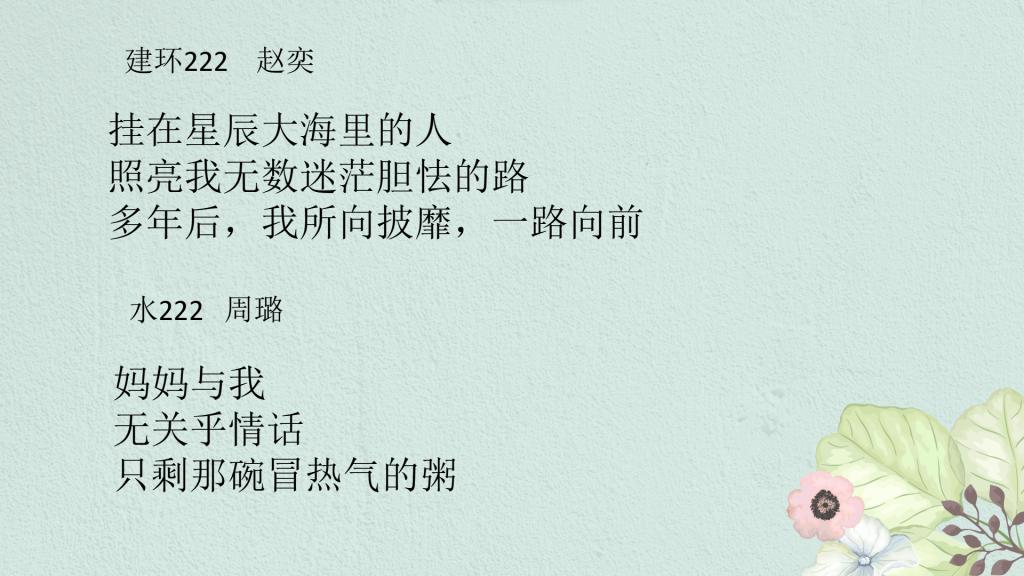 见字如面,纸短情长,简短的三行情诗,是内心爱的抒发。本次活动形式新颖,贴近日常生活,对于学生的健康成长具有重要的意义。通过活动开展,不仅可以培养学生对于父母的感恩意识,也能引导学生树立正确的恋爱观;同时,这种简单而又情感温度的活动也可以加强学生彼此之间的情感联系,增进学院的凝聚力。