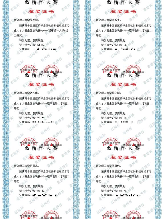 目前,第十四届“蓝桥杯”全国软件和信息技术专业人才大赛(以下简称“蓝桥杯”大赛)全国总决赛成绩公布,我校学子共计获得一等奖1项、二等奖10项、三等奖13项、优秀奖14项。