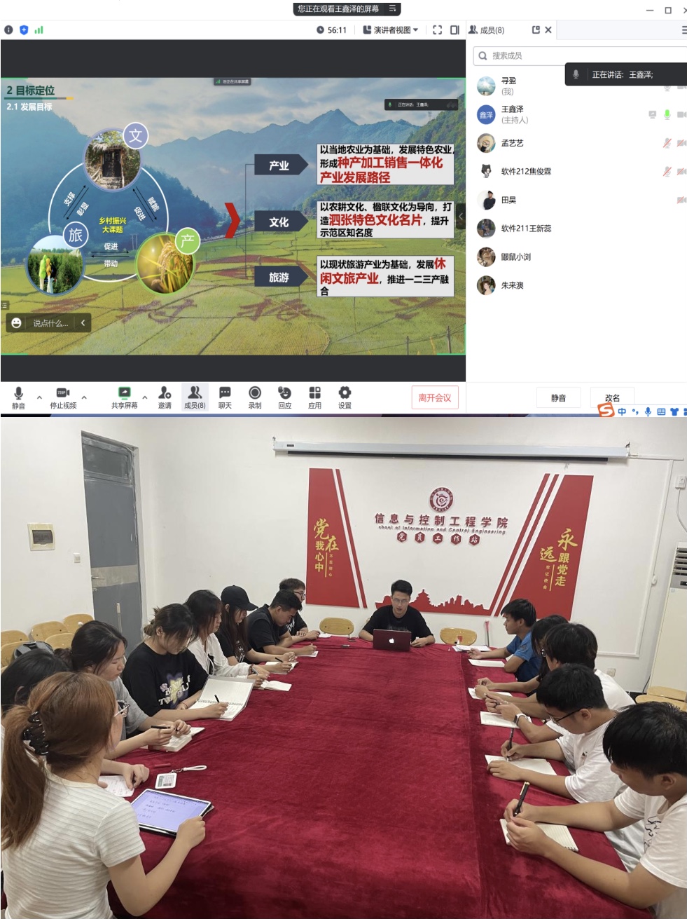 为了提升社会实践活动的实效性与针对性,党支部积极筹备、精心组织,从6月份,实践小组成员召开了3次暑期社会实践交流会,共同讨论了实践方案、拟开展项目与任务分工。在讨论交流环节,邀请了2017级校友王鑫泽,作为济宁市泗水县泗张镇优秀选调生代表与团队成员线上进行交流。