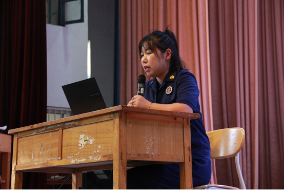 为提高学生消防安全意识和防灾自救能力,有效预防和遏制火灾事故的发生,创造安全有序的校园环境。9月8日下午,市北区消防救援大队石欣玉为学生作了消防安全教育知识讲座。石欣玉主要从火灾危害与消防工作、学校火灾及预防、消防器材及使用方法、疏散逃生四个方面展开,通过翔实的案例,深入浅出地阐述了普及消防知识、提升消防意识的重要性,重点讲解了学校火灾的类型和预防方法,在场学生获益匪浅。讲座之后,全体学生进行了实地操练,在相关人员指挥下,学生们有序撤离、快速到达操场,接着由专业人员、军训教官展示灭火器并讲解使用方法。师生们积极参与,现场体验,真正掌握了灭火技能,赢得了阵阵掌声。