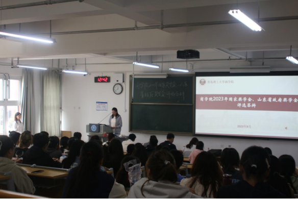 9月25日,商学院于C1-1教学楼202教室组织召开2023年国家奖学金、省政府奖学金答辩,商学院党委副书记兼副院长李慧,团委书记兼学生工作办公室主任薛诚,学生处教育管理科副科长张翔,辅导员孙楚、王赛出席本次答辩会并担任评委,22级、23级学生自愿到场观摩学习。