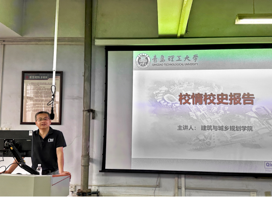为做好2023级新生入学教育,引领学生知院史、明院情,增强爱校荣校意识,9月27日,建筑与城乡规划学院在1教300阶开展2023级新生校情校史教育。此次讲座由学院党委书记肖学斌主讲,学院全体本科生新生参加。讲座由辅导员王文卿主持。